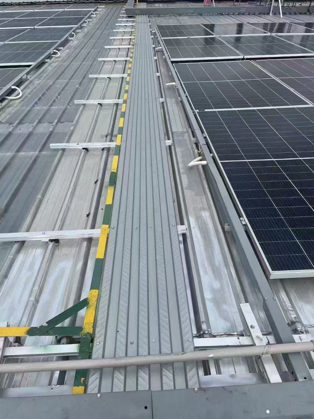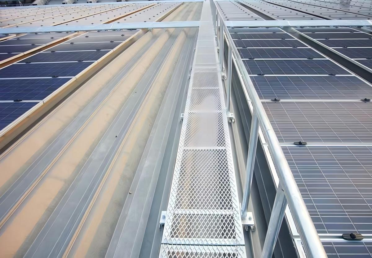 சூரிய நடைபாதை இது மிகவும் பொதுவாகப் பயன்படுத்தப்படும் சூரியக் கூறு ஆகும், இது பொதுவாக சூரியக் குடும்பத்தின் சிறந்த பராமரிப்பை எளிதாக்குவதற்கு நிறுவப்பட்டுள்ளது. இது நீர்ப்புகா அடுக்கு அல்லது பணியாளர்களின் அடிக்கடி இயக்கத்தால் ஏற்படும் கூரை கசிவுகளுக்கு சேதம் ஏற்படுவதைத் தடுக்க பிரத்யேக நடைபாதைகள் மூலம் சுமைகளை விநியோகிக்கிறது.
